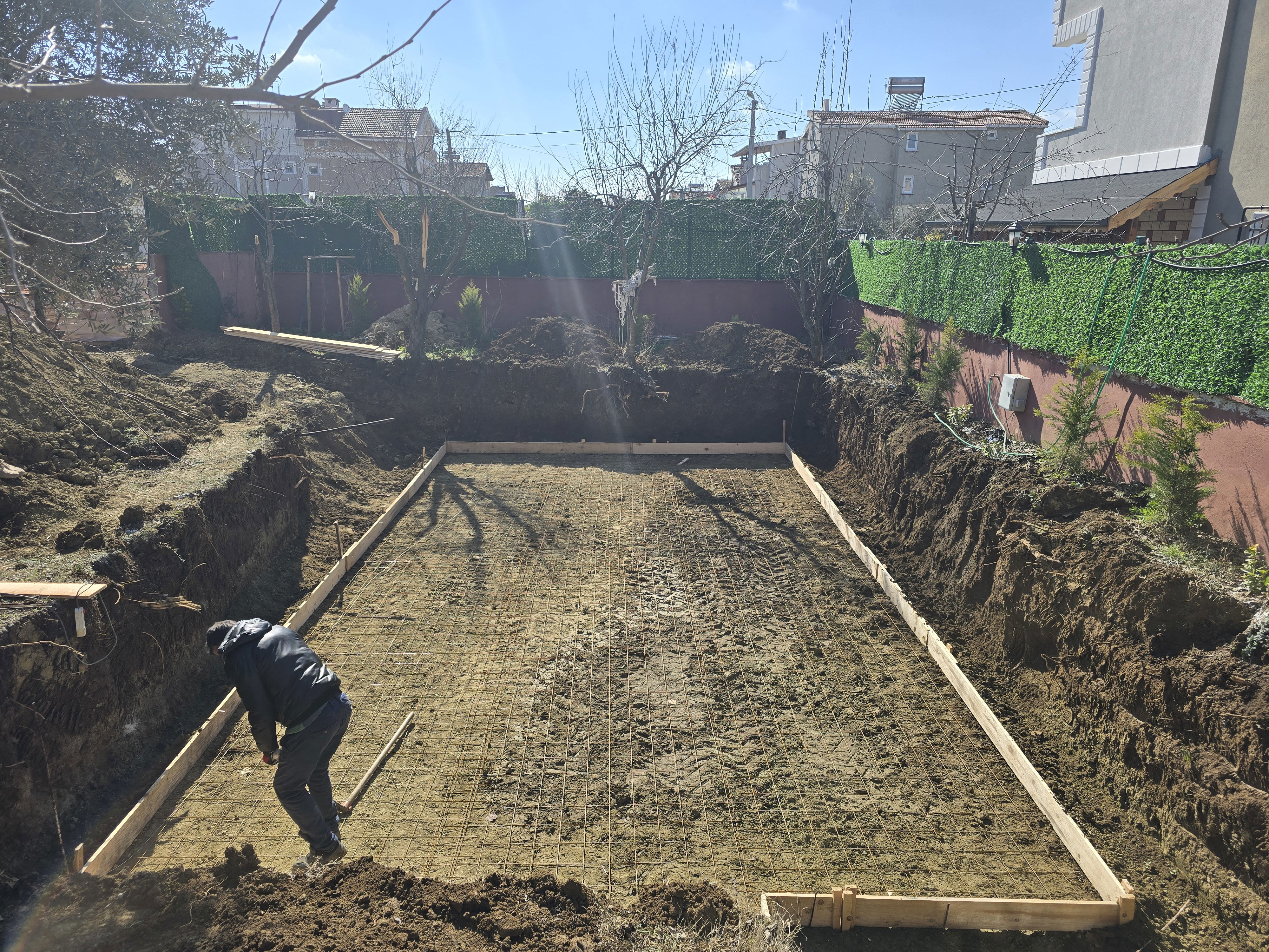 KAZI ALANI HAZIRLANDIKTAN SONRA HAVUZ YAPIM ALANI BETONA HAZIR HALE GETİRİLİR VE ÇESAN DEMİRLER DÖŞENİR