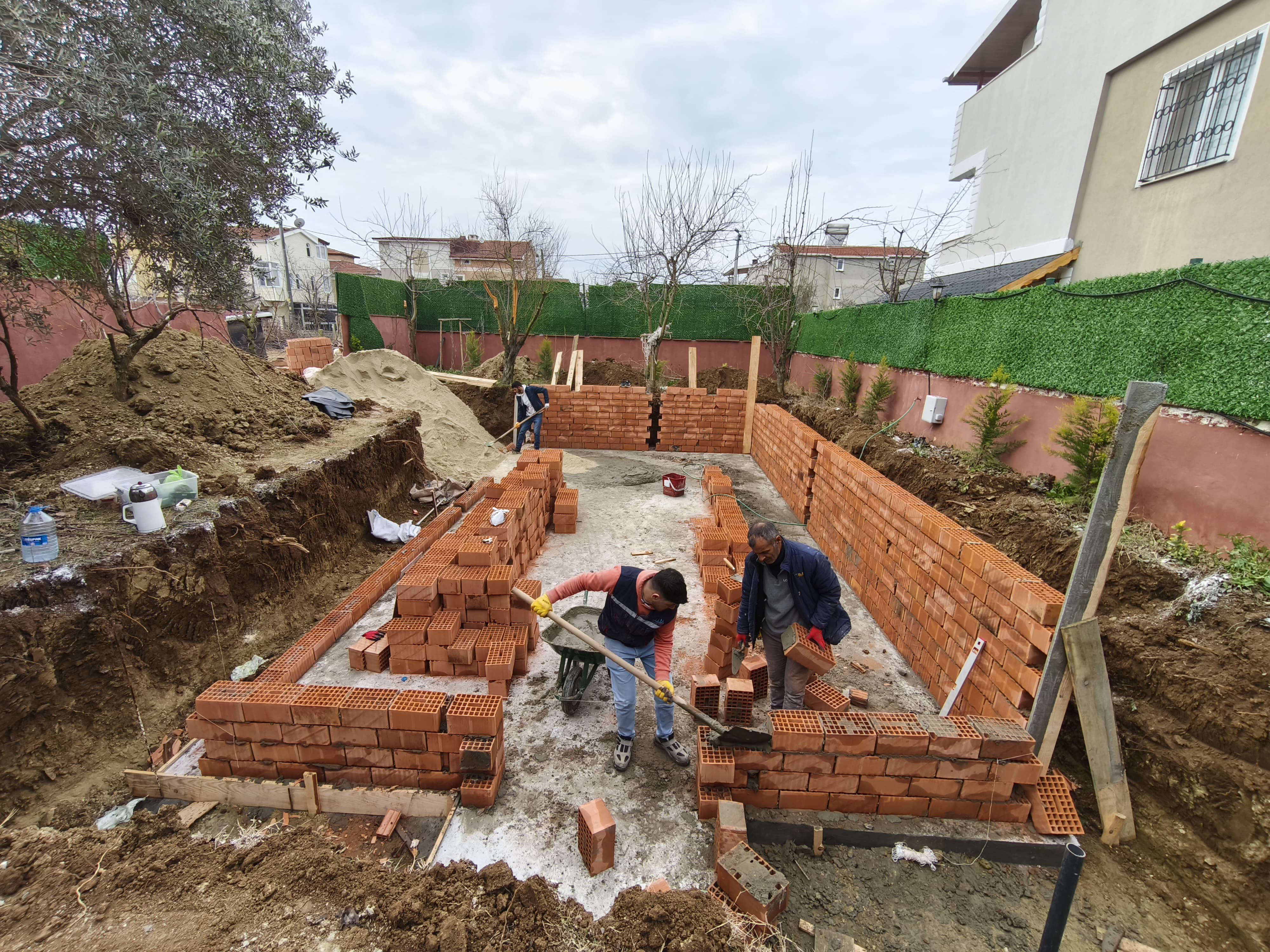 YIĞMA TUĞLA ÖRME İŞLERİ BİTTİKTEN SONRA KOLONCUKLARA BETON ATILIR VE HAVUZ İÇERİSİ VE DIŞI SIVANIR