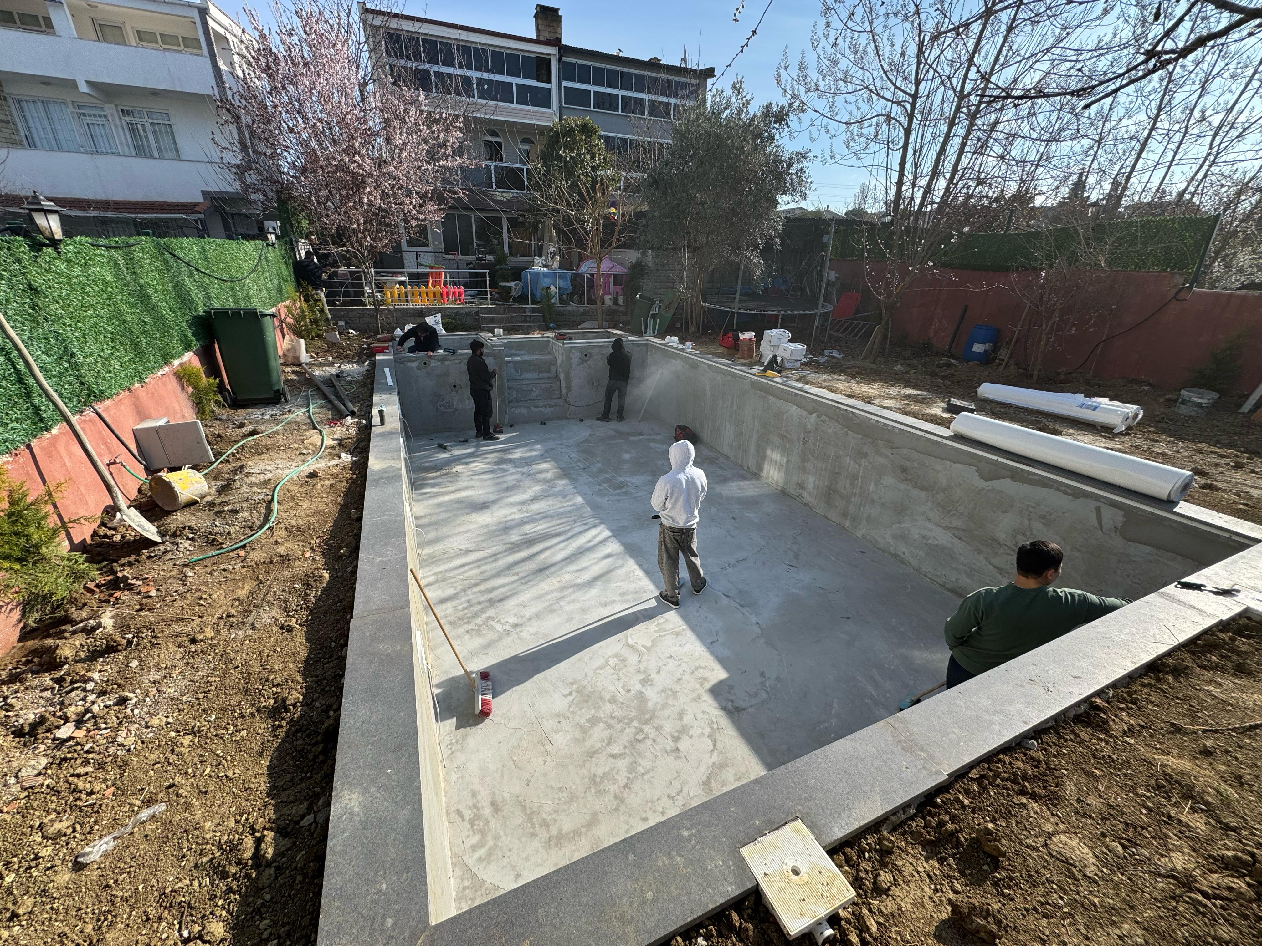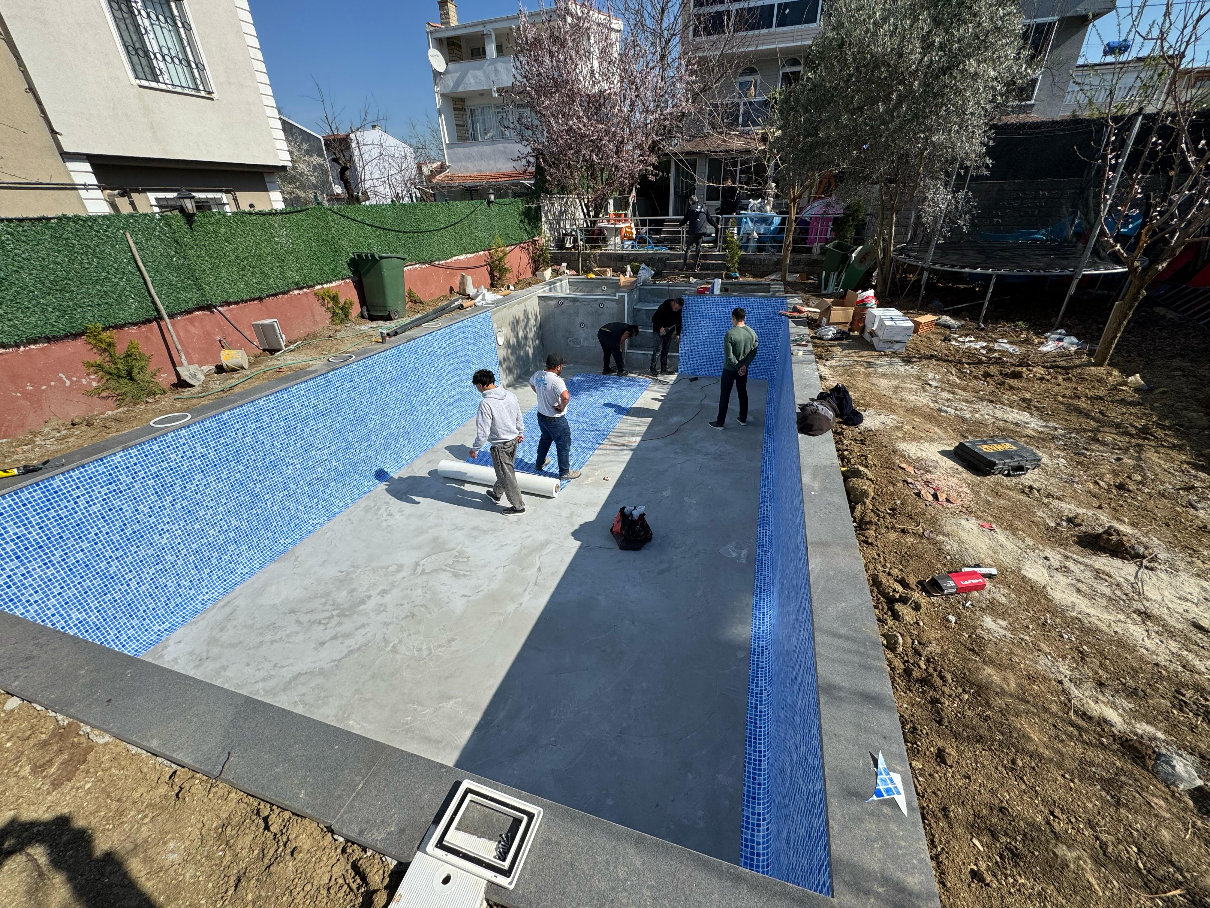 SIVA ŞAP MERMER VE KALEKİM İŞLERİ BİTTİKTEN SONRA HAVUZ LİNER KAPLAMAYA HAZIR HALE GETİRİLEREK TEMİZLENİR